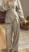 Aurelia Wide-Leg Tailored Pants – High-Waisted Modest Trousers in Taupe, Brown & Cream