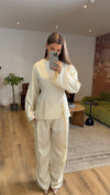 Elaya Relaxed Drawstring Denim Shirt & Wide-Leg Pants Set