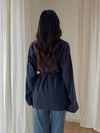 Lina Drawstring Waist Shirt Top in Midnight Blue